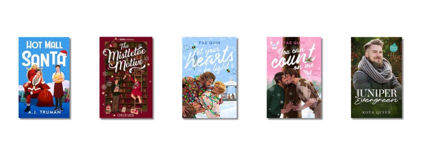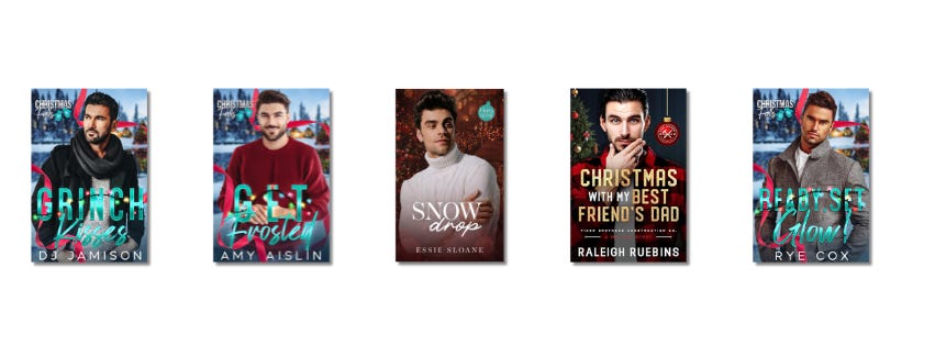 Grinch Kisses - DJ Jamison - The first in a multi-author series that follows characters in a small Christmas-themed village. This one is about the grinch who organizes the huge Christmas festival in town every year who falls for the guy his sister brings home to meet the family. Each book reads like a Hallmark movie.3