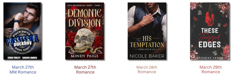 March 27: Possessive Puckboy (Puckboys #8) by Eden Finley & Saxon James - “Connor Kikishkin may be the one who made me the target for years of name-calling, but I’ve always wondered if my hatred for him bordered too much on the obsessive side to truly be classified as hate.”