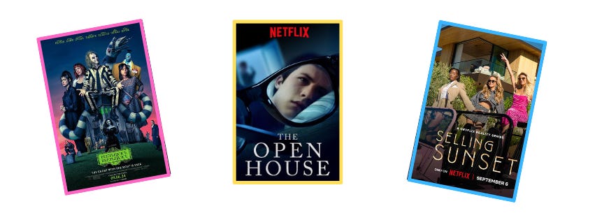 Went to see Beetlejuice Beetlejuice with the kiddo this weekend. I will let you know how it is in the next update on Wednesday. Also watched The Open House on Netflix. I have a half-hour test for movies. If it doesn’t hook me in 30 minutes, I shut it off because it’s not for me. This was one of those movies. The vibe was creepy and intense but nothing was happening so I got bored. I’ve also been watching Selling Sunset S8 on Netflix. I’m almost done the season, but so far I’ve been enjoying it.